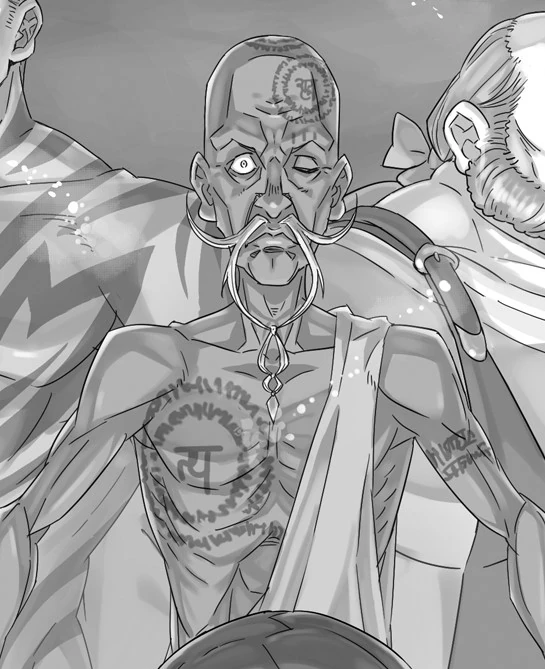 Dorkell is an extremely slender and old man with long white moustaches and a strange pattern engraved on his upper-right chest.
